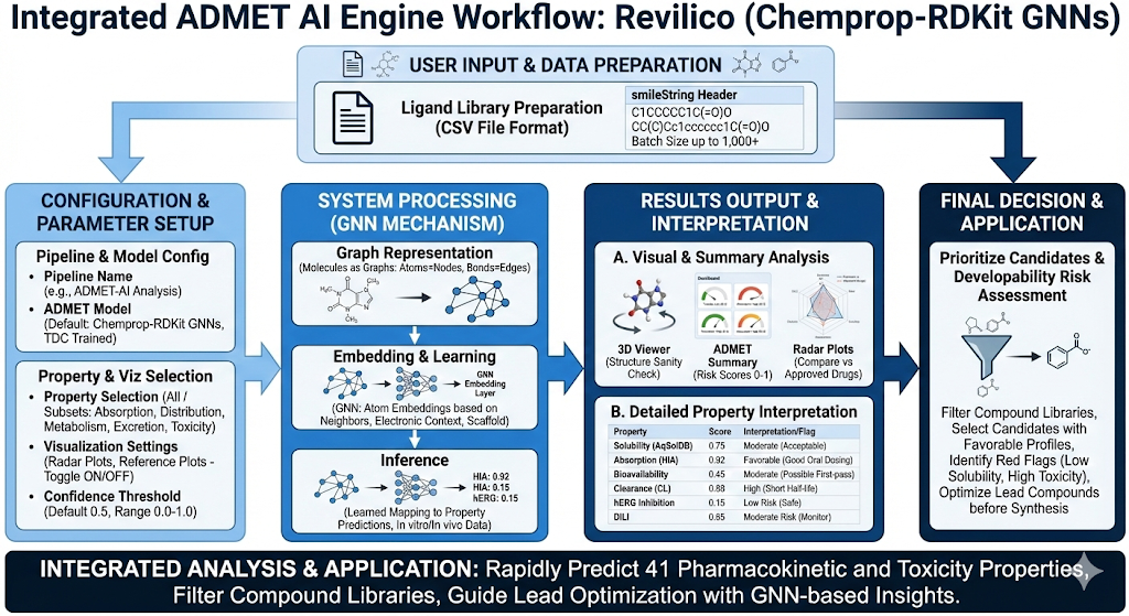 ADMET-AI rapidly predicts 41 pharmacokinetic and toxicity properties, including absorption, distribution, metabolism, excretion, and toxicity endpoints, using machine learning models trained on Therapeutics Data Commons datasets. This enables drug discovery teams to filter thousands of compounds from virtual screening or generative AI in minutes, eliminating molecules with poor drug-like properties (low solubility, hERG liability, hepatotoxicity) before expensive synthesis and testing. By providing fast, accurate ADMET predictions with the highest performance on industry benchmarks, ADMET-AI bridges the gap between computational hit identification and experimental validation, dramatically reducing the cost and time of lead optimization for later stage tasks after activity optimizations.